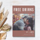 Lustigt bröllop spara datum-kort i ett modernt vinterinspirerat rost färg med vit textdesign med anpassningsbarnas fotodesign som lyder "Fri dryck (och vi är gifta sig)". Anpassa kortets framsida med vågräts foto (skörd om du vill rektangulera innan du överför för bästa resultat). Lägg till namn, datum och plats för bröllop. Anpassa baksidan av kortet med information om bröllop. Kontakta mig genom knappen nedan om du behöver hjälp.