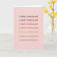 Ett roligt kort för att visa uppmuntran och stöd för någon som går igenom en hälsokris, som sjukdom, drift, hälsovård eller någon form av skräm. Budskapet på framsidan är "Jag hatar choklad jag hatar choklad MMMMM". Insidan av punchline lyder: "spelar ingen roll får dig till MMMMM!" Du kan anpassa det här kortet så att det blir bra med ditt eget meddelande, lämna det som det är eller helt enkelt lägga till ditt namn. Finns i tre färgrutor.