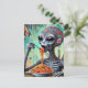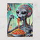 Funny Funky Alien Eating Spaghetti Collage Vykort