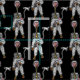 En lustig illustration av en giraff i rymden. Den här giraffen bär ett astronautrymme kostym och det finns en rymdfärja i bakgrunden.