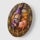 Funny Gnome and Pig in Autumn Harvest Scene clock Stor Klocka