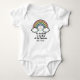 The Design: A bright, multi-colored rainbow arc with cheerful clouds. One cloud features a giggling baby in orange, while the other features a happy baby in blue.