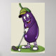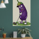 Funny Golf Eggplant Character: Cartoon Golfer Vege Poster