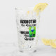 Ett lustigt glas för den som vill vara på golfbanan varje dag men måste jobba! Citatet lyder: "Beroende till Golfing, tvingad att arbeta!"