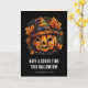 Kolla in det här coolan Halloween-kortet i toppen! Det är har att den här beundransvärda pumpen gungar en häxhatt - som livet för den där party. Och högerna under, det finns en linje i fantastisk som säger: "Ha en jobbig tid i Halloween." Det är som ett helt bloss, som uppmanar dig att ha en explosion och njuta av den pumpkryddade roligten i Halloween!