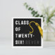 Funny graduation card for Class of '26 graduate featuring black grad cap, gold tassel and creative line. To personalize edit text to add his or her name.