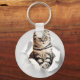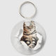 Funny Grått Cat Popping thru Torn Papper Illusion Nyckelring