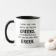 This funny Greek mug says, "Two Kinds of People: Greeks and Everyone Else Who Wishes They Were Greek." Great for celebrating Greece's Independence Day. A wonderful gift for proud Greeks that shows off their pride and sense of humor. It's ideal for birthdays, holidays, and other special occasions.