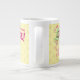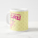 En lycklig gris på en specialitet mugg. Användan "Anpassa den här mallen" om du vill ändra texten "Kaffe, din dagliga ursäkt för CAKE!" och skapa en unik, anpassad gåva. Textändringar visas på båda sidor. Ett mugg för en kaka och kaffe älskare, med ett glansigt gris, under en tårtad med lagrar, med fyllningar av grönt och täckta med rosa ljus.