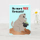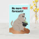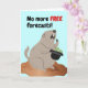 Funny Groundhog Day, paper greeting card with a demanding and angry groundhog holding a bowler hat with money in it. No more FREE forecasts! written on the cover. Happy Grouchy Groundhog Day! Art, image, and verse copyright © Shoaff Ballanger Studios, 2026.