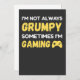 This bold and humorous design reads “I’m not always grumpy, sometimes I’m gaming,” featuring bright yellow and white text with a fun controller icon on a sleek black background. Perfect for gamers with a sense of humor, this design captures the playful side of gaming life and makes a great fit for streamers, gaming fans, and anyone who loves fun gamer quotes.