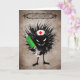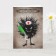 Ett lustigt Halloween-kort med en tecknad av en ond karaktär som håller i en spruta och anpassadet "Happy halloween" över mörkens griniga texturerad bakgrund. Denna konstig har förberett en injektion med ett okänt läkemedel - det kan vara ett mirakelmedel, men det kan också vara ett gift. Vem är villig att botas?