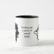 Ett leende tecknad-spöke kastar upp händer i förvillelse med en svart, ojämn kant-bakgrund. Samma bild trycks på båda sidor av mugg, med anpassadet i mitten som säger "Känn bara ett spöke av mig på sistone!". *Den här designen användor klipper ut bilder från www.graphicsfactory.com.