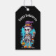 Gift märkre med en illustration av ett humoristiskt skelett. Ta en drink med top hat. Han har ett stort leende på ansikte. Cute och spooky roligt för Halloween.