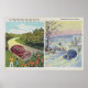 Under 1930-talet framhävs skillnaden mellan att bo i Florida på vintern och en i norra stater. Bild till lämnad visar solsken och Florida-orangen, medan högerna visar fordon som glider i snö och is. Det står i skämttexten: "För att avundas och glöda, kanske inte är trevligt, tar jag sol, tar is" och sedan "Hälsning från Florida" på högerna.