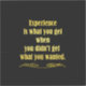 Ett motiverande citat i gulten står mot en svart bakgrund, där man betonar värdet av de erfarenheter som vunnits från ouppfyllda önskningar. Ornate dekorative linjer accentuerar budskapet nedan.