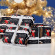 Kreativets hockey-julklapp med julklapp med helgdag julhockey-spelare på bondgården.