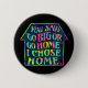 Gå stort eller gå hem! Det korrekta svaret är naturligtvis "hem". Den här roliga knappen för inåtvända och stolta längder är gjord i stora, feta, högljudda bokstäver (låt mugg vara högt så att du inte behöver vara!). Det har en tydlig återfärgningseffekt, med ord inuti huset som du inte kan vänta på att komma tillbaka till.