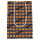Funny pumpkins on a gift bag for Halloween. Use "Personalize this template" to change the "Happy Halloween!" text and create a unique, customized bag. Present your Halloween treats and surprises in this pumpkin gift bag, featuring a motley crew of carved jack o'lanterns. Six funny characters, arranged in a busy pattern of stripes, grinning, gurning and scowling. Original drawings by myself in the retro pixel art style. Happy Halloween!