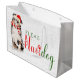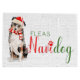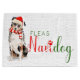 En tricolor Australian shepherd sitter med en söt röd julhatt och en röd och vit strimlad scarf är redot att önska Fleas Navidog till vilken hund älskare eller djurälskare som helst som närmar sig Aussie-rasen.