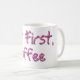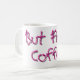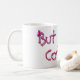 Start your morning crafting session off right with this unique coffee mug. This design features the classic phrase "But First, Coffee" created with a textured, pink and black yarn-style typography, making it the perfect accessory for fiber artists. Whether you are a knitter, crocheter, or embroidery enthusiast, this cup is the perfect companion for your yarn stash. It makes a wonderful gift for moms, grandmas, or any crafter who needs a caffeine boost before picking up the needles.