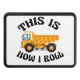 Den här roliga presenten för en lastbil-chaufför har en gult lastbil i superskojet. Det här är "Hur jag rullar". En coola gör en kulturreferens för en chaufför som gillar modern humor. Spärrtäcke för släpvagn för förare.