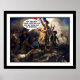 Eugene Delacroix’s Liberty Leading The People - Funny Spoofing The Arts Poster with Soldier saying "Not sure what you're fighting for lady but you've got my attention!" Romantic painting of 1830 is probably Delacroix’s most famous work – the bare breasted and footed goddess warrior, triumphantly leading the Parisians of the French Revolution in one hand and brandishing a bayonet in the other to their ultimate goal for liberty, fraternity and equality!