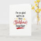 This greeting card features a simple off-white background with a centered message that feels honest and supportive. The text reads, “I’m so glad we’re in this Shitshow together,” with most of the words in black, casual script. “Shitshow” stands out in large red brush-style lettering right in the middle, with short red lines around it like little bursts. Small yellow stars and a few tiny red hearts sit near the main word, adding a sweet touch without taking over the design. The final word “together” appears near the bottom in black script and is underlined by a thick red brushstroke. Overall, it mixes humor with affection, like a note to someone you trust when life gets messy ❤️💌.