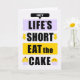 Ett födelsedagskort för någon, som inte är specifikt för genderna och som inte vill äta kaka på sin födelsedag? Muffinsarna och fet gult visas med skuggor av lavendel och .