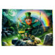 Lustigt lycklig leprechaun med regnbåge på bakgrunden. Upptäck Lycklig Leprechauns magi! 🍀 Tittar att lägga till en extra dos av tur och hedra ditt liv? Möt vår Lycklig Leprechaun, den irländske glädjens slutsymbol! Den här lilla medarbetaren kommer att göra din dag ljusare med sin eländiga flina och vismska charm.