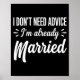 Funny Married Saying No Advice Needed Husband Wife Poster