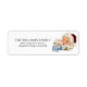 Konstruktionen har en rolig leende tomten med rödlaxhatt med hullrött bär och löv. Handskriven "Merry and Bright"-text med dekorativ glitter överst. Anpassa den till din familj namn och adress.