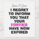 **Beskrivning:** Det här superskojet vin-märket är perfektens milstolpe-födelsedagspresent för alla som fyller 50 år! Den här etiketten innehåller den femtiofemte texten "Din fyrtio har nu gått ut". Den tillför en humoristisk beröring till vilken flaska som helst i vin, och skapar den som en oförglömlig gåva för att fira en femtioårsdag. Designen är helt redigerbar, vilket gör att du kan anpassa informationen till mottagaren kostym. Oavsett om du är tittar att ge lite skratt till en födelsedagsfest eller ge en rolig och unik gåva, är vin-märkningen säkert slå. Det är lätt att använda och förvandlar omedelbart flaska till en minnesvärd födelsedagskalas. Firar att man vrider 50 med stil, humor och naturligtvis vin! lustigt vin, 50-årsjubileum för vin, milstolpar för födelsedagspresent, redbar vin-märkning, 50-årspapper för födelsedagar, vin-märkning för 50-årsjubileum, 50-årsjubileum, 50-årsjubileum, 50-årsjubileum. Femtionde, roliga vin-etiketten.
