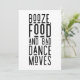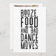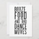 Roligten sparar datumkorten för det moderna paret i en svart och vit typografi av "Sprit, mat och dåliga dansrörelser" på framsidan. Anpassa med baksidan av detta spara datumet med ditt foto, namn, datum och plats för bröllop samt all ytterligare information, t.ex. din webbplats bröllop.