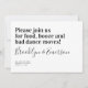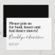 Låt dina vänner och familj veta att du har satt ett datum med det här roliga Spara datumkortet - texten lyder: "gå med oss för mat, sprit och dåliga dansrörelser!"