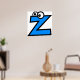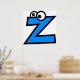 Lustigt monogram brev Z i blått och svart med tecknad ögon. Anpassa enkelt och välj din egen bakgrund färg. Bild finns tillgänglig på olika presenter och produkter.