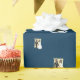 Personligens utformning med en illustration av älgsvansar, söta lycklig nygifta, groom bär svart kostym, bruden bär vit klänning, blå bakgrund med anpassadets textmall för ditt namn eller meddelande