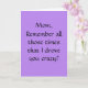 Ett Mors dag-kort som är perfekt för oss alla "vuxna" söner och döttrar att skicka till Mamma som stod ut med oss under alla dessa "svåra" år. Vi donerar en del av varje försäljning till The Breast Cancer Research Foundation.