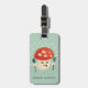 Lustigt svampbagagemärke med en vektorillustration av en giftig svampande tecknad som förgiftas genom att man äter för mycket av sitt eget slag och anpassadet namn och adress på dess från- och baksidor.