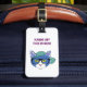Lustigt bagagemärke, med en coola, nerig hipsterkatt med glasögon och ett basebolllock som bärs bakåt, och texten "Händer av". Det här är mitt." Se till att du anpassar namn och adress på baksidan. Fin bagagetapp för coolans nördar, hipsters, kattälskare.