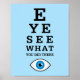 Den fina optometriutformningen Snellen öga säger: Öga Se vad du gjorde där. Den här poster utskriften är en underbar presentidé för doktor, optiker, oftalmolog eller optometriker i öga.