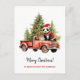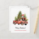 Lustigt Panda i Röda Retro Van Julafton vykort. Vattenfärgen teckning på en söt vit pandabjörn i den röda vintagen lastbil och Julgran. Personlig.