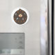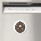 Den här magneten har en tecknad av ett Pappa som är ett kaffemonster. Hans ansikte ligger i en stor kaffedroppett och har ett läskigt tunga och börjar gå sönder. Socker, mjölk, kaffe och en sked omger honom allt han behöver för sin favoritdryck. I den ljusbruna texten står det "kaffe från Pappa kärlek".