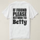 Den här designen är avsedd att vara personlig med namn i din BFF, kompis, make/maka eller partner. Det paras perfekt med vår "Jag är Betty"-skjorta. Få inte borttappad när du är på väg. Den här humoristiska designen är perfekt för en bröllop-gag-gåva, parvis, kostym eller säng respresent. Den är lämplig för vit och ljusa färgader. Anpassad genom att byta "Betty" till vilken annan namn som helst. Designtips: storlek personlig till något större än "RETURN TO".
