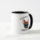 Den här lustiga fransken bulldog-kaffet mugg gör perfekten till älskare för frenchie med en känsla av humor. Utformningen illustrerar tecknad-stil med en rödvingad fransk av färgad med solglasögon med texten "Pardon my Frenchie". Utformningen är densamma på båda sidor om mugg.