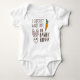 En humoristisk och söt Påsk pun doodle baby-kostym med ett lustigt ordspråk: "Jag morot väntar på Påskharn".