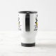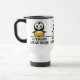 Ett sött, knubbig och lustigt Penguin i svart och vitt med blå bakgrund med fåniget "En penguin i hjärnan".