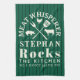 Celebrate your husbands love for cooking with this "Funnypersonalized Rocks Kitchen Meat Whisperer" tea towel. The vibrant green background with bold white text and fun illustrations of farm animals and cooking tools makes a bold statement. This towel is not just a kitchen essential but a declaration of culinary expertise for the man who truly rocks the kitchen. Ideal for any occasion, it adds a touch of personality and humor to the heart of the home.