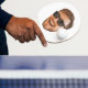 Lustigt personlig ansikte-utklippt fotopingpongpaddel åt honom. Använda vilken mobilapp eller vilket redigeringsprogram som helst för att skapa urklippet och ladda upp en genomskinlig växlingsfil.