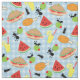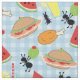 Lustigt, tecknad picknickmat som smörgåsar, stekt kycklingskinka, skuren vattenmelon, lemonad och myggor, naturligtvis! Allt på en blå gingham mönster picknic filt. Den här humoristiska designen är söt för sommarpickniker eller för lite stollig i ditt hem.
